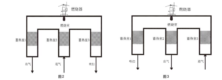 換時間過長,排出廢氣溫度過高,熱量流失;切換時間過短,會造成切換閥及氣缸壽命變短,需要視工況確定切換時間運行規(guī)律為:前一個流程出氣口為下一個流程的進(jìn)氣口,前一個流程吹掃口為下一個流程出氣口,前一個流程進(jìn)氣口為下一個流程吹掃口。如此設(shè)置為了好提高蓄熱體的熱回收